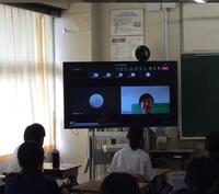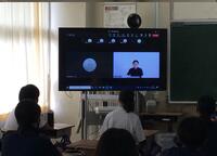 写真は、信篤小学校、二俣小学校とのオンライン合同集会の様子です。