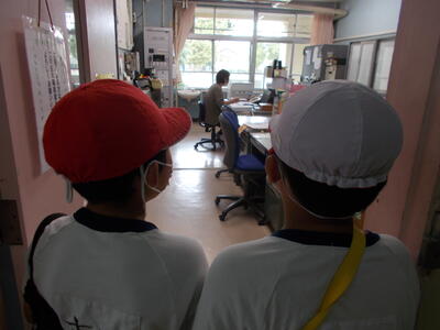 校長室で仕事をしていたら「しつれいします」と1年生のかわいらしい声。顔を上げるとたくさんのカメラがパチリパチリ。仕事ぶりを激写されてしまいました。学校探検の学習の一環だそうです。どんな写真が仕上がってくるでしょうか。見せてもらうのが楽しみです。