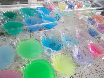 一緒に行ったグループの子供たちは「おかの」さんが見せて下さった菊の工芸菓子にびっくり。「オザキクレープ」では用意していただいた台の上からクレープの実演をじっくり見ることができました。「アランチャドレッシング」ではちょうど買い物にいらしたお客さんからお金を受け取り、商品をお渡しするお手伝いまでさせてもらいました。