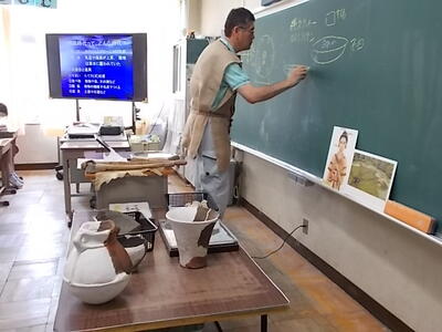 今日は6年生の縄文体験出前授業です。市川考古・歴史博物館の方が、各学級で出前授業をしてくださいました。子供たちは、目を輝かせて市川市の遺跡から出土した貴重な実物を見たり、話を聞いたりしていました。
