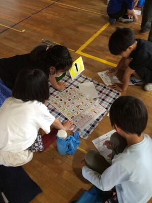 2択クイズでは、赤か青、どちらか色付きの紙を挙げて回答するのも楽しかったようです。