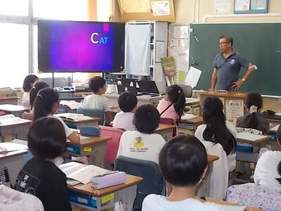 3年生も4年生も元気に英語でゲームをしたり、ワークシートに英語を書いたり。4年生はローマ字の学習も始まっています。チャールズ先生の次の来校は11月ということでした。待ち遠しいですね。