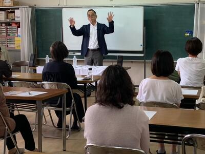 朝からぽつぽつ雨が降り、業間には、子供たちは久しぶりに校庭で遊ぶことができた今日、第一回家庭教育学級が開催されました。講師として日本博物館教育研究所の「内海 美由紀」先生をお招きし、読み聞かせ音声入りpower point絵本についてお話をいただきました。今回は対面でもzoomでも参加が可能だったことや、お子さんと一緒に絵本をつくる作業が、自分自身のアップデートにもつながる、といったお話がとても印象的でした。
