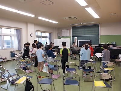 校内音楽会に向けて、計画委員さんが、各教室を回ってテーマ募集を呼びかけています。教室で堂々と話す姿、朝の支度が終わっていない学級の様子を察知して廊下で待つ姿、さすが高学年ですね。とても立派です。
