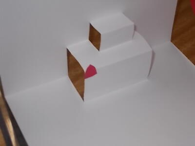 2年生がカッターナイフを使ってつくった素敵なたてもの。その斬新なデザイン、アイディアには脱帽です・・・