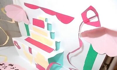 4年生の教室では、楽しそうに「飛び出すカード」をつくっていました。渡す相手の笑顔を思い浮かべているのでしょうか、つくっている子供たちも笑顔です。