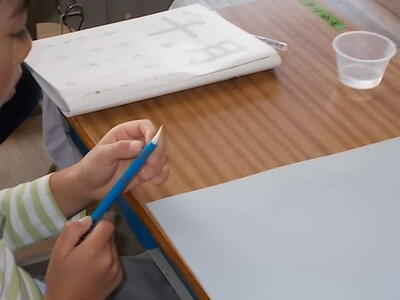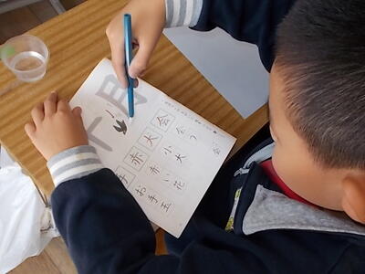 子供たちは「とん、すーっ」と筆づかいに気を付けながら、楽しく学習に取り組んでいました。