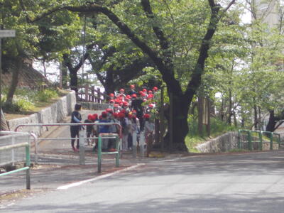 2~6年生がテストをしている間、1年生は須和田公園に行きました。雨上がりで地面がしっとりしていたせいか、転んでもすぐに手やひざを払って鬼ごっこを続ける子供たち。先生の話をきちんと聞くことができていて、とても感心しました。行きかえりは、車に注意しながら道路を横断していました。