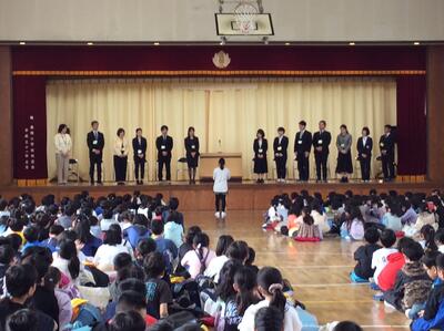 体育館や教室は、子供たちのキラキラした笑顔でいっぱい。お客様として来てくださった地域の皆様は、元気なあいさつや返事ができる子供たちの姿に驚いていらっしゃいました。