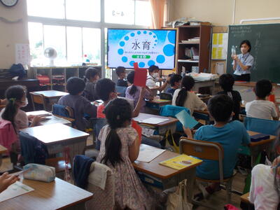 4年生は「水育」の授業を実施しました。水道から出てくる水は、いったいどこからやってくるのでしょう。企業から講師をお招きし、映像やワークシートを使ってクラスごとに学習しました。素敵なプレゼントもいただいたようです。
