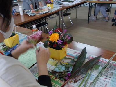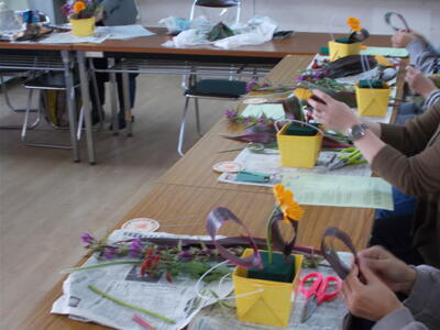 今日は1級フラワー装飾技能士の市島 美香子(いちじま みかこ)さんを講師としてお迎えし、家庭教育学級が行われました。お花クラブの指導のしていただいているので、昨日今日と連日真間小学校に来ていただいています。