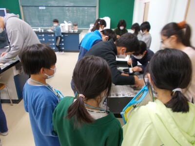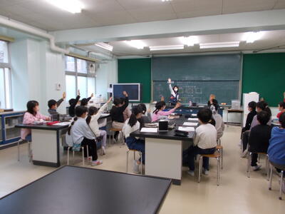 改修工事が終わってきれいになった理科室。机も壁も床も、とてもきれいで明るく感じるので、学習をしている子供たちもなんだかうれしそうです。