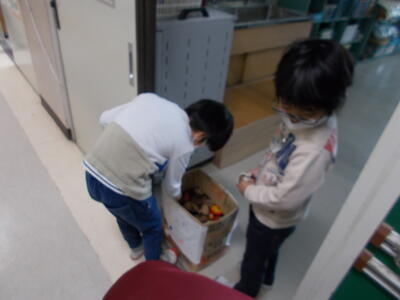 先日、少し離れたところの農家の方が、「畑から、たくさんの〇〇〇〇〇の幼虫が見つかったので」と車で届けてくださいました。今、それらは1年生の廊下にいます。
