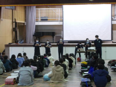 午後、6年生は第二中学校へ向かいました。二中生徒会が主催する「学校説明会」に参加するためです。