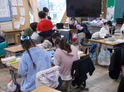 教室を訪れると、3年生が、タブレットで調べものをしていました。国語の学習で弘法寺について調べているそうです。私にも、豆まきの動画を見せてくれました。操作にとても慣れた様子で、感心しました。また、友達と仲良く学習を進める姿にも成長を感じています。調べたことをたくさん教えてくださいね。楽しみにしています。
