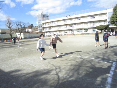 5時間目、校庭で楽しそうな笑い声が聞こえます。6年生が卒業前に楽しい思い出作りをしよう、と学年集会の真っ最中。校庭いっぱい「スポーツ編」を繰り広げていました。6年生は、この間まで校庭のU字溝清掃をしたり、ペンキ塗りをしたり、学校のために奉仕作業をしてくれていたのです。