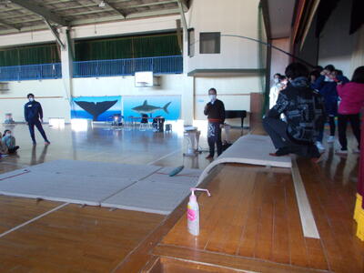体育館の2年生、「排他的経済水域」や「SDGs」「えら呼吸」「のり養殖」「魚にウロコがある理由」「背ビレの役割」など、とてもよく知っていて、説明してくださる方も本当にうれしそうでした。