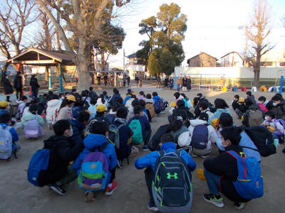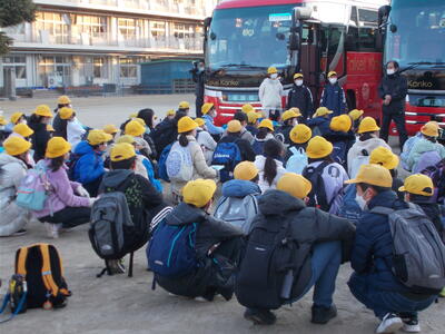 5年生は、いよいよ今日から2泊3日のホワイトスクールです。ずっと楽しみにしていた子供たち。多くの子供たちが集合時間より早く来ていました。出発式のあと、見送りの保護者の方々や先生たちに手を振って、元気に出発しました。白銀の大自然を楽しみ、多くのことを学んできてほしいです。保護者の皆様、寒い中、ありがとうございました。
