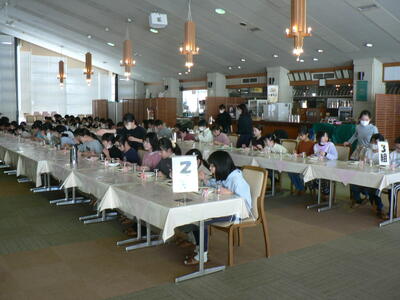 昼食は、インストラクターさんとグループごとに食べています。午後は太陽も出てきたようですね。