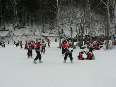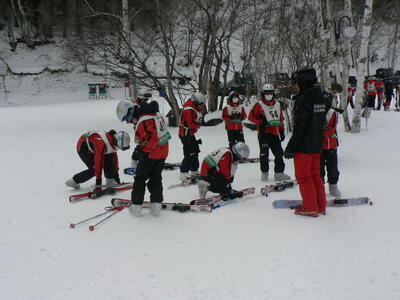 昼食を食べて、さっそくゲレンデに出ています。スキーグループごとに付いてくださっているインストラクターさんが、丁寧に指導してくださっています。