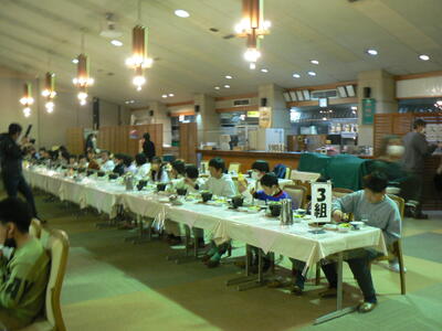 尾瀬岩鞍の朝は、風が強く、少し吹雪模様。昨夜は、部屋で30分ほど経ちましたら、ほとんどの子供たちが寝息をたてていて、夜中も起きだすことなく眠っていたそうです。