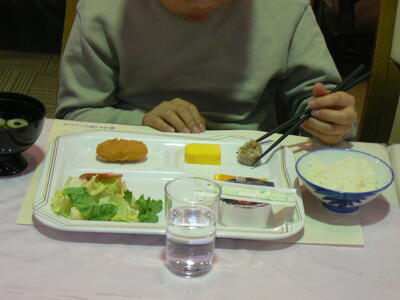 昨晩の夕食と今朝の朝食の様子です。