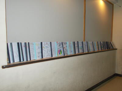 隣には、ノートのようにコンパクトにまとまった作品集が。学習の成果をまとめたものということでした。子供たちが持ち帰る日をどうぞ楽しみにお待ちください。