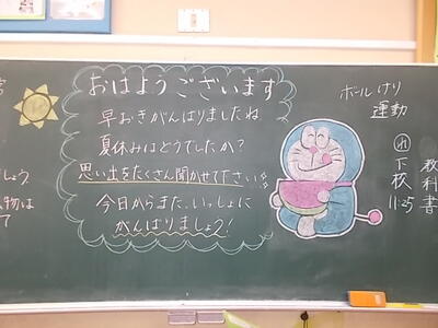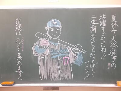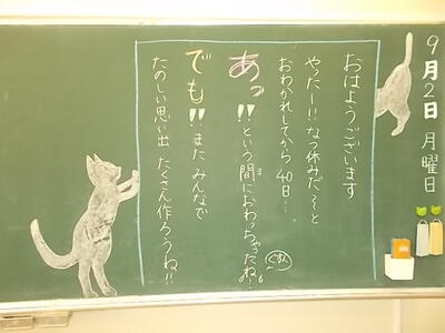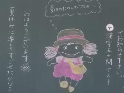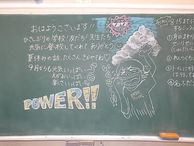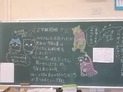 そして教室には・・・先生たちによる「黒板アート」が。明日からも、みんな元気に来られそうですね!