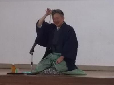 今日は三遊亭円福さんをお迎えして、4年生の落語教室が行われました。