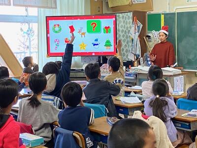 4年生は、クリスマスにちなんだ英語の単語を10個覚えたあと、隠された単語を当てるゲームを。