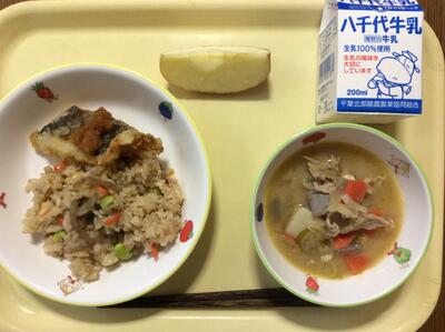 る具沢山のみそ汁、食べ応えのあるカツで寒さに負けない元気いっぱいになれる献