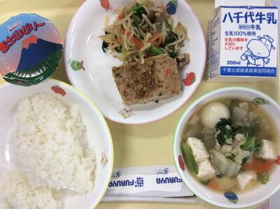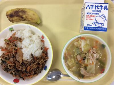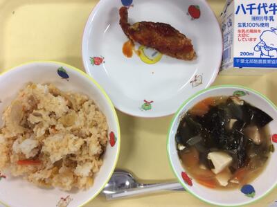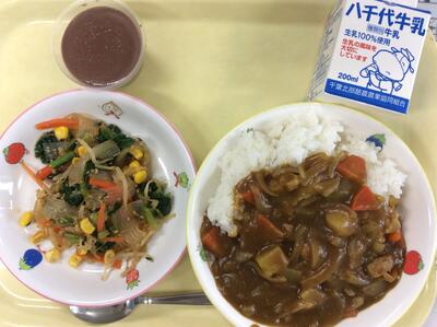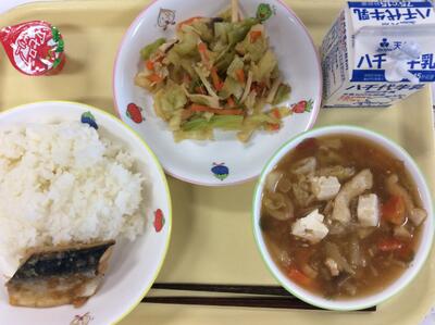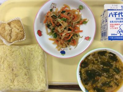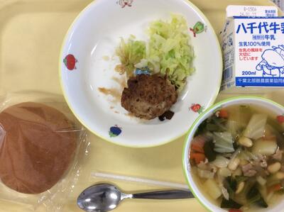 今日の給食は、バンズパンにハンバーグとキャベツを自分で挟む「セルフハンバーガー」でした。