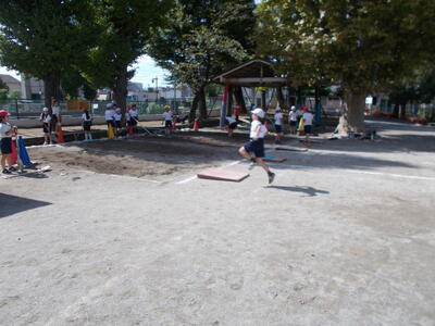 気持ちの良い秋晴れの下、4年生が幅跳びの学習をしていました。朝早く、5年生がこの砂場を掘り起こし、砂を柔らかくしてくれたおかげで、安全に幅跳びができます。5年生、ありがとうございます。