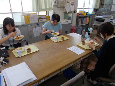 6年の先生たちは職員室で黙食。子供たちがいないので、なんだか少し寂しそうでした・・・
