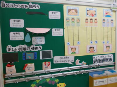 また、大きな目も貼られていて、まぶたやまつげの仕組みなども子供たちにわかりやすく工夫されています。