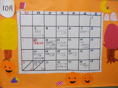 掲示委員会さんが今日の委員会活動で「10月の予定」を完成させ、校長室まで持ってきてくれました。今週で前期も終わり、来週からは後期です。