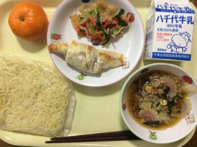 大根を使ったナムルやラーメンと餃子の組み合わせで1年から6年生まで楽しめる献立でした。