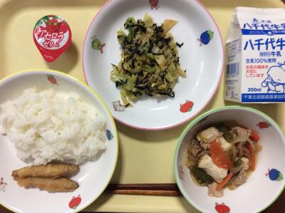 今日の献立は6年1組で選ばれたメニューです。テーマは「中華を楽しむ冬の献立」です。旬の