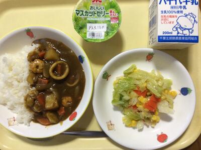 今日のカレーは、6年生が外国語の授業で考えてくれた「power-up sea food curry」でした。