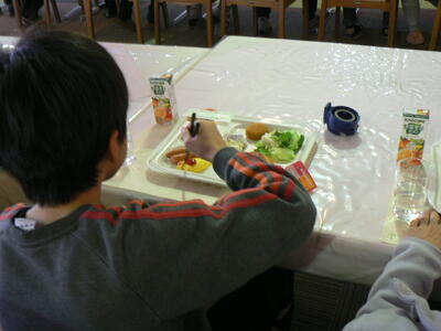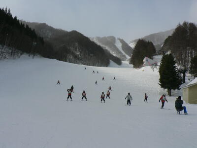 朝食を食べた子供たちは、元気に最後のスキー教室へ出発しました。今日は、リフトを使い、上のほうから滑ってくるそうです。