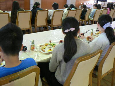 昼食は、インストラクターさんとグループごとに食べています。午後は太陽も出てきたようですね。