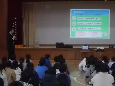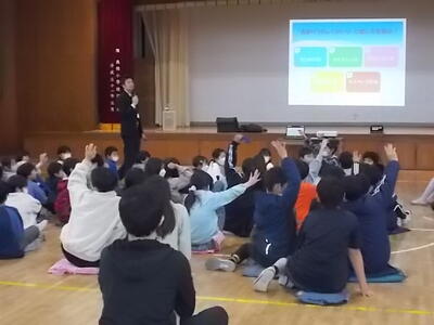 今日は少年センターの奈良坂先生をお招きして、インターネットトラブル防止授業が行われました。LINEなど使っている子供たちもいることから、とてもよい機会だったと思います。