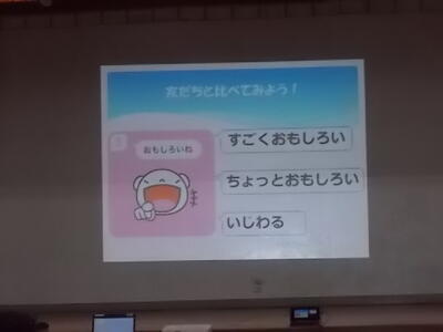 まったくそんな会話をしたくないのに、こういう言い方をされたとき、どのようにその場を切り抜けるか、「わかる」「やめなよ」「そうなの」「ところで」「ちがうよ」「(スルー)」その時々の考えによってこう答えてみたら?という話にうなずいていたり、同じスタンプが送られてきても感じ方がそれぞれだということに「えーー?いじわるに感じるの?」「え、おもしろいの?なんで?」と新たな気づきがあったり。大切な学びができました。