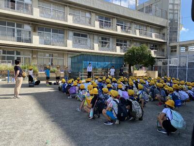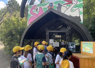 今日は3年生の校外学習です。教室で学習した市川市の様子や動物の生態を実際に見て学ぶ日。暑い朝でしたが、立派に出発式をして元気に出かけて行きました。