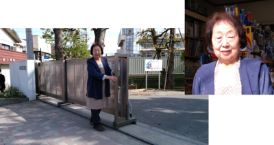 真間小学校正門前の丸屋文具店の矢部さんは、子どもたちの登校が終わった後、毎日正門を閉めてくださっています。