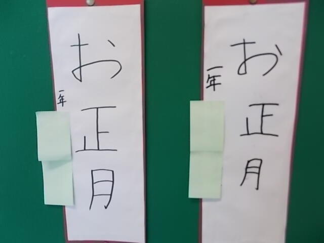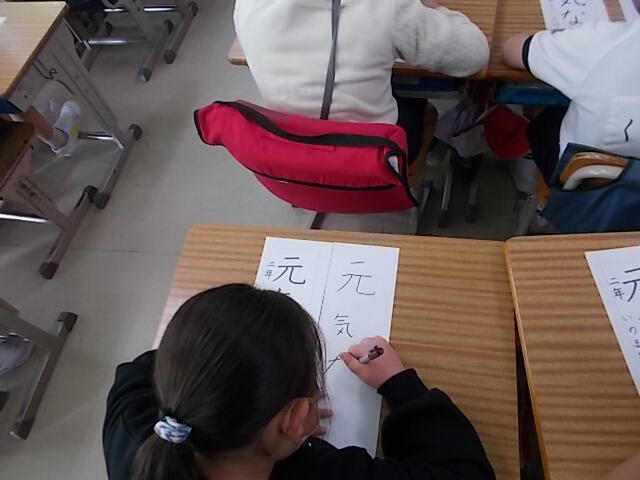 朝晩の気温の低下から、今日は本校のプールも薄っすらと氷が張っていました。寒い日が続いていますが子ども達は元気です。書写の時間に、1年生は「お正月」、2年生は「元気な子」を丁寧に書いていました。1年生は入学時に比べると力強く整った字を書けるようになりました。