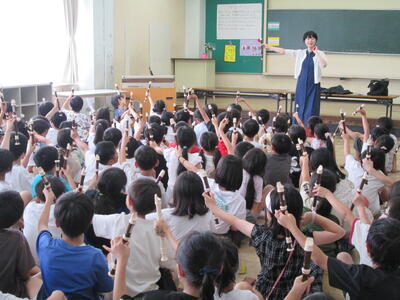3年生が、リコーダーについて講師の先生に教えていただきました。