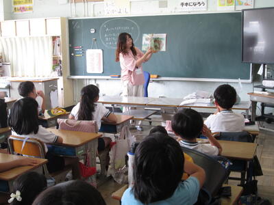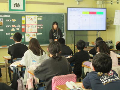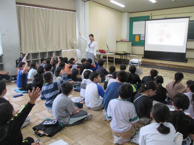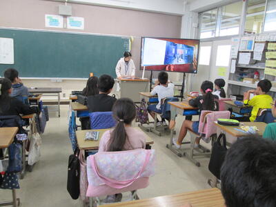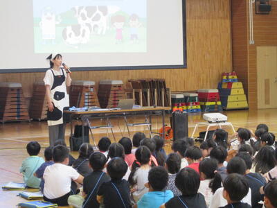 1年生・2年生が朝ごはんの大切さについて明治の管理栄養士さんに教えていただきました。