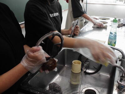 6年生が家庭科の学習でクリーン大作戦に取り組みました。