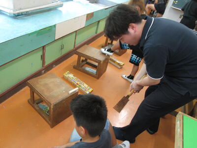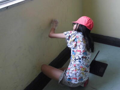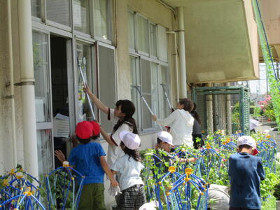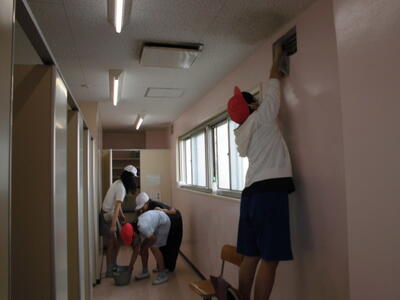 保護者の方にもお手伝いいただき、1学期の汚れを落としました。